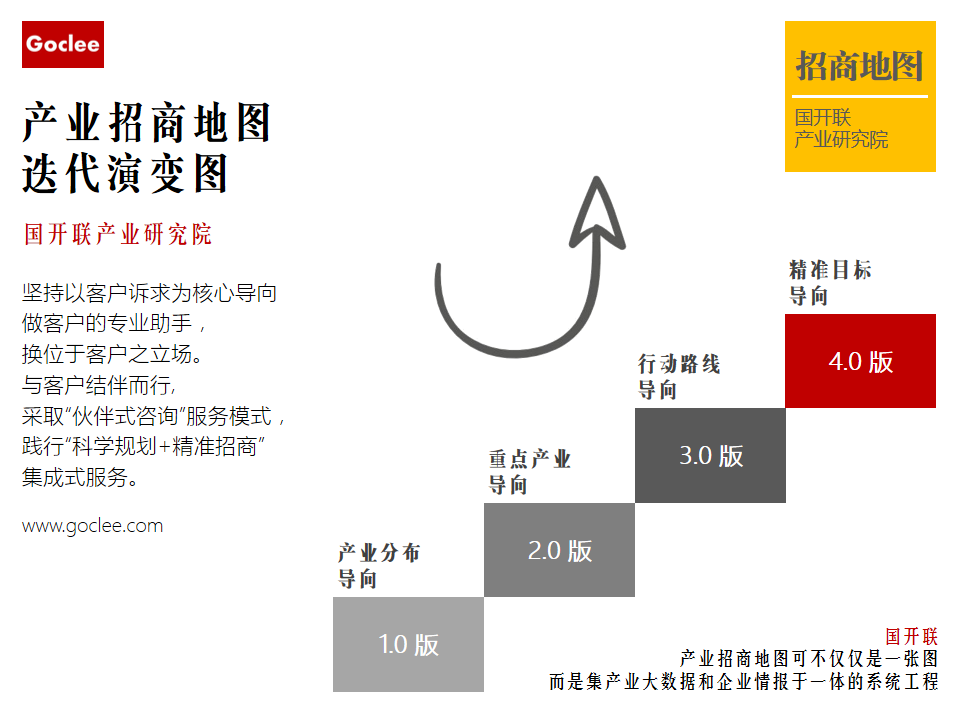 國(guó)開聯(lián)產(chǎn)業(yè)研究院日前宣布將結(jié)合近年來(lái)的業(yè)務(wù)實(shí)踐再次升級(jí)服務(wù)體系,全面推行4.0版產(chǎn)業(yè)招商地圖服務(wù),以更好的踐行“服務(wù)地方產(chǎn)業(yè)經(jīng)濟(jì)”的使命。