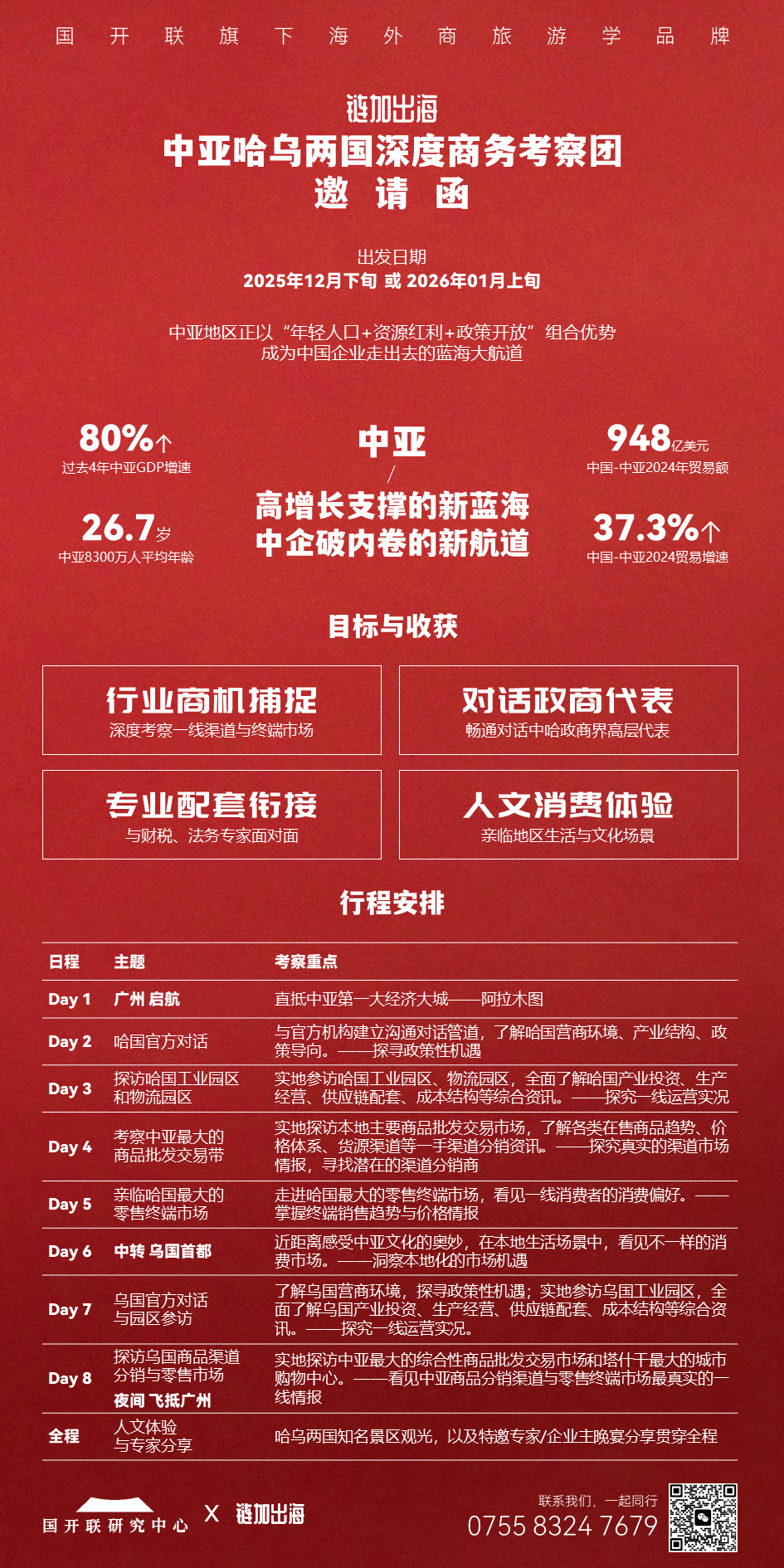 ——>2025年12月中亞哈烏兩國(guó)深度商務(wù)考察團(tuán)招募公告
