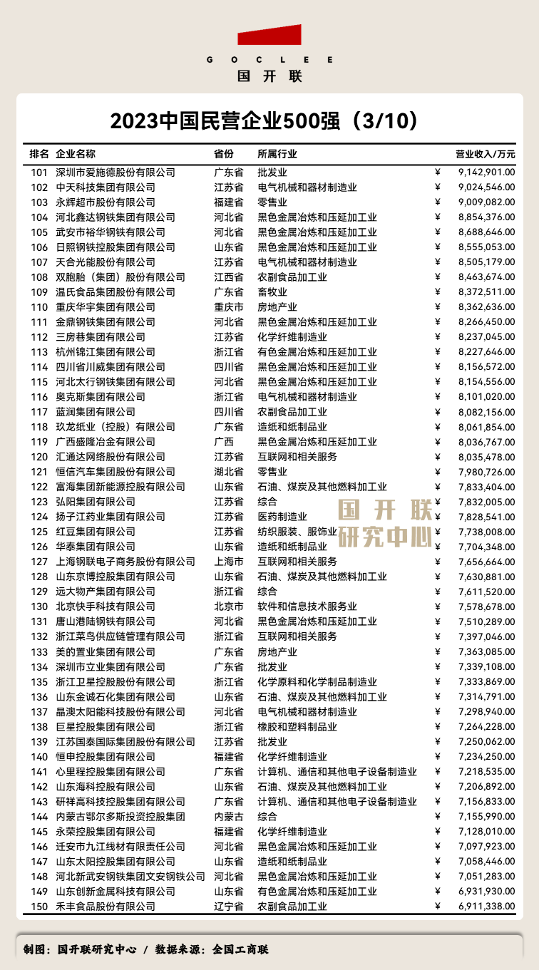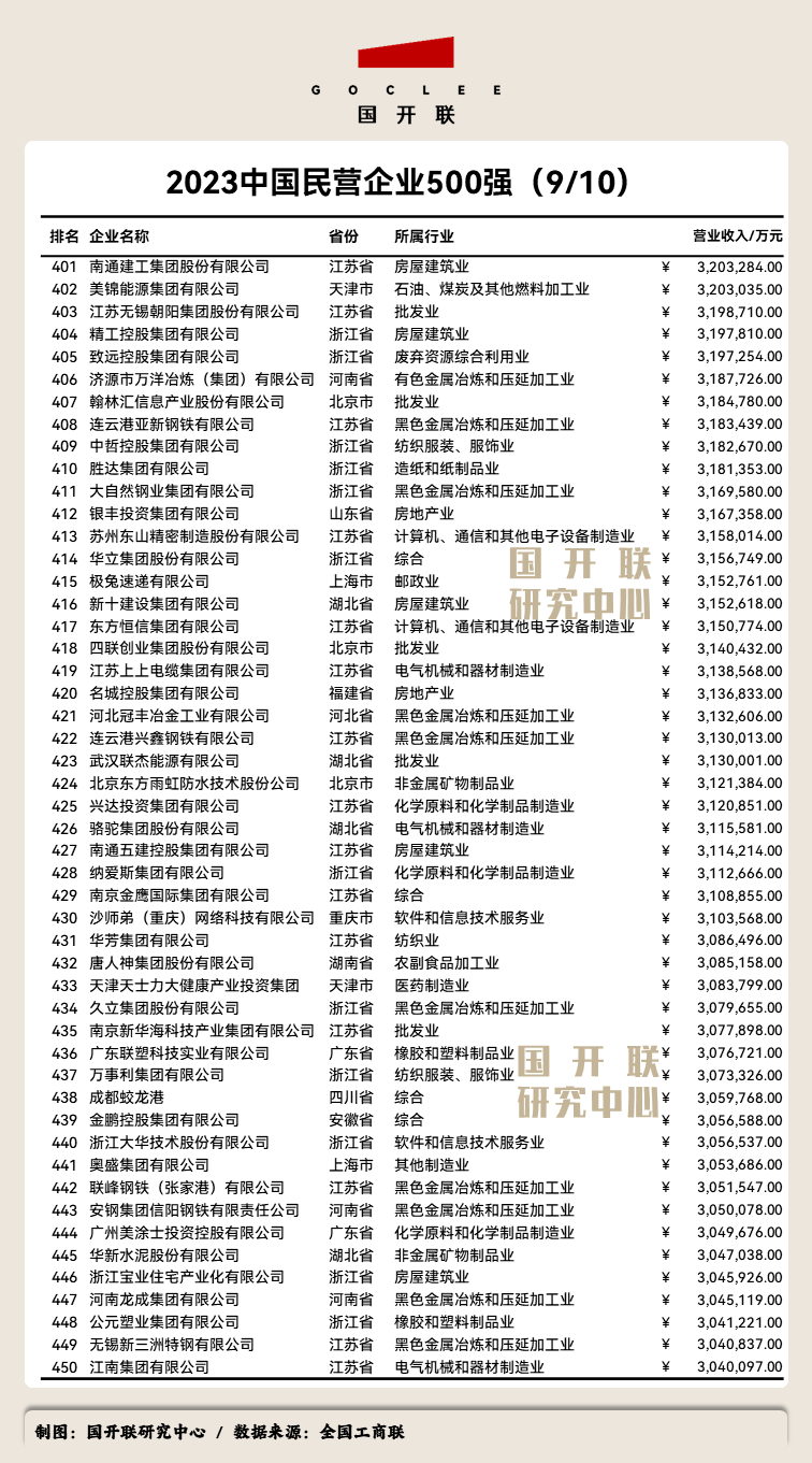 后附:《2023中國民營企業(yè)500強》榜單