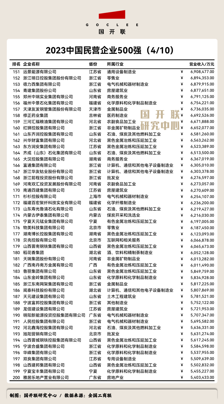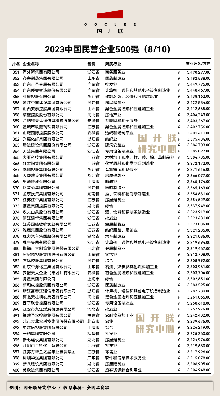 附:《2023中國民營企業(yè)500強》完整榜單