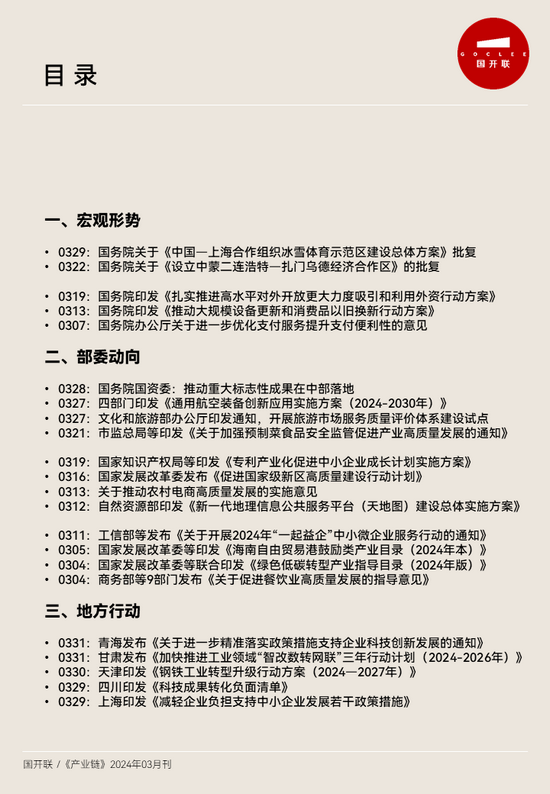附:國(guó)開(kāi)聯(lián)《產(chǎn)業(yè)鏈》2024年03月刊 目錄