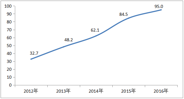 2012年,智能電視滲透率僅為32.7%。到2015年底,智能電視已逐漸普及,絕大部份在市場上銷售的電視均為智能電視。預(yù)估到2016年電視智能化會全面普及,滲透率將達95%或以上。