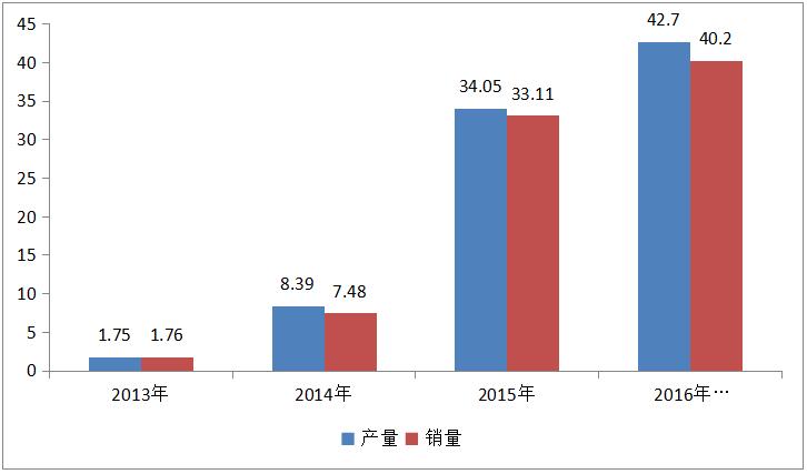 圖表 1 2013-2016年1-11月新能源產(chǎn)銷情況(單位:萬輛)