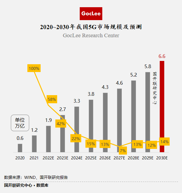隨著我國(guó)5G基礎(chǔ)設(shè)施建設(shè)全面鋪開以及5G商用進(jìn)程的不斷加快,產(chǎn)業(yè)規(guī)模將日益擴(kuò)大。根據(jù)國(guó)開聯(lián)研究中心報(bào)告顯示,預(yù)計(jì)到2030年,我國(guó)5G市場(chǎng)規(guī)模將達(dá)到6.6萬億元。