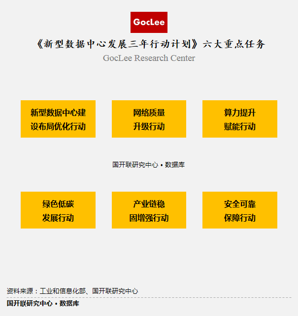 2021年7月14日,工業(yè)和信息化部發(fā)布《新型數(shù)據(jù)中心發(fā)展三年行動(dòng)計(jì)劃(2021-2023年)》(以下簡(jiǎn)稱《三年行動(dòng)計(jì)劃》),提出六大行動(dòng)作為重點(diǎn)任務(wù),統(tǒng)籌推進(jìn)新型數(shù)據(jù)中心發(fā)展,構(gòu)建以新型數(shù)據(jù)中心為核心的智能算力生態(tài)體系,發(fā)揮對(duì)數(shù)字經(jīng)濟(jì)的賦能和驅(qū)動(dòng)作用。