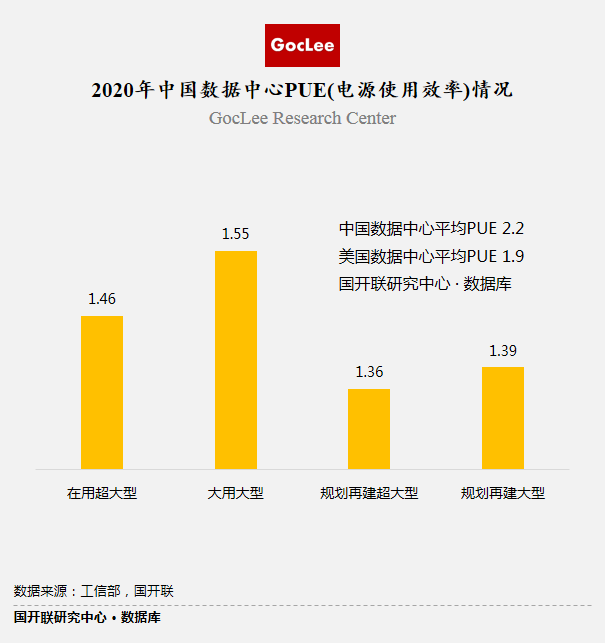 PUE值是指數(shù)據(jù)中心消耗的所有能源與IT負(fù)載消耗的能源之比,PUE值越接近于1,表示一個(gè)數(shù)據(jù)中心的綠色化程度越高。隨著綠色發(fā)展理念的深入貫徹和碳達(dá)峰、碳中和戰(zhàn)略的推進(jìn),我國(guó)數(shù)據(jù)中心綠色發(fā)展進(jìn)程日益加快,對(duì)PUE要求越來(lái)越高。2013年以前,全國(guó)超大型數(shù)據(jù)中心的平均PUE超過(guò)1.7,到2019年底,全國(guó)超大型數(shù)據(jù)中心平均PUE為1.46,趨嚴(yán)的監(jiān)管對(duì)PUE降低功不可沒(méi)。