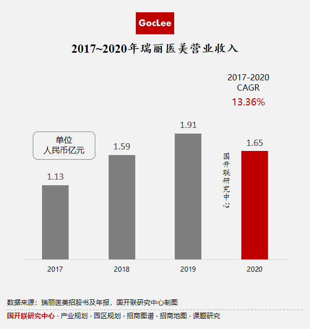 在這樣的地域背景下,一些醫(yī)美機(jī)構(gòu)深耕經(jīng)濟(jì)實(shí)力強(qiáng)、消費(fèi)水平高的小城市市場,將連鎖經(jīng)營重心下沉,配套符合當(dāng)?shù)匦枨蟮尼t(yī)美項(xiàng)目,已在當(dāng)?shù)貥?gòu)筑起品牌優(yōu)勢,典型案例有2020年赴港上市的瑞麗醫(yī)美。瑞麗醫(yī)美深耕浙江市場,截至2019年末在浙江省內(nèi)約850名醫(yī)療美容服務(wù)提供商排名第5,是浙江省內(nèi)代表性醫(yī)美連鎖品牌之一。招股書及財(cái)報(bào)數(shù)據(jù)顯示2017年~2020年公司總營收從1.13億元增至1.65億元,年復(fù)合增速達(dá)到13.36%。