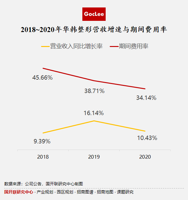 財(cái)報(bào)數(shù)據(jù)顯示,2018年~2020年華韓整形營收增速從9.39%增至10.43%,而期間費(fèi)用率則從45.66%降至34.14%,背后體現(xiàn)了“大中臺(tái)、小前端”模式對公司經(jīng)營的正面效應(yīng)。