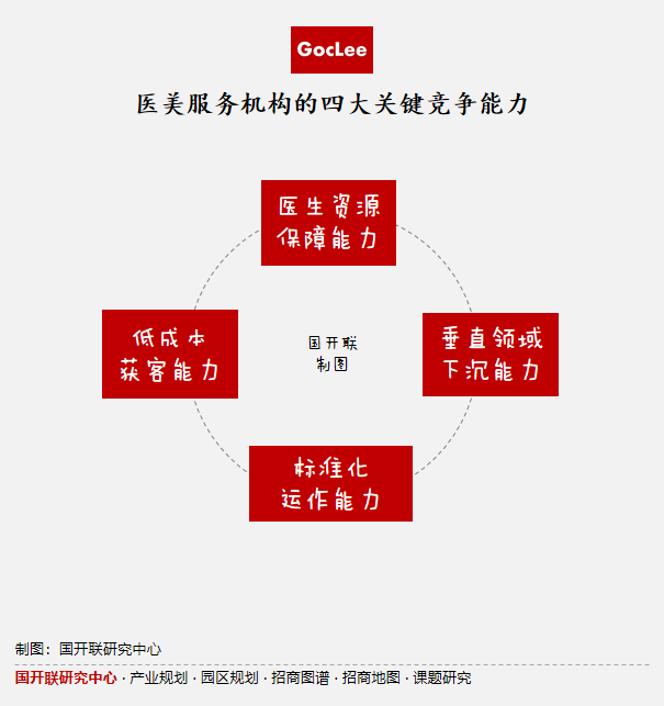 顏值經(jīng)濟(jì)大潮下, 醫(yī)療美容已成為醫(yī)療產(chǎn)業(yè)的重要分支之一,行業(yè)高速增長、資本追逐的大背景下,如何贏得市場,實(shí)現(xiàn)可持續(xù)經(jīng)營發(fā)展,關(guān)鍵在于醫(yī)生資源保障能力、低成本獲客能力、標(biāo)準(zhǔn)化運(yùn)作能力以及垂直領(lǐng)域下沉能力等四個(gè)方面關(guān)鍵競爭能力。