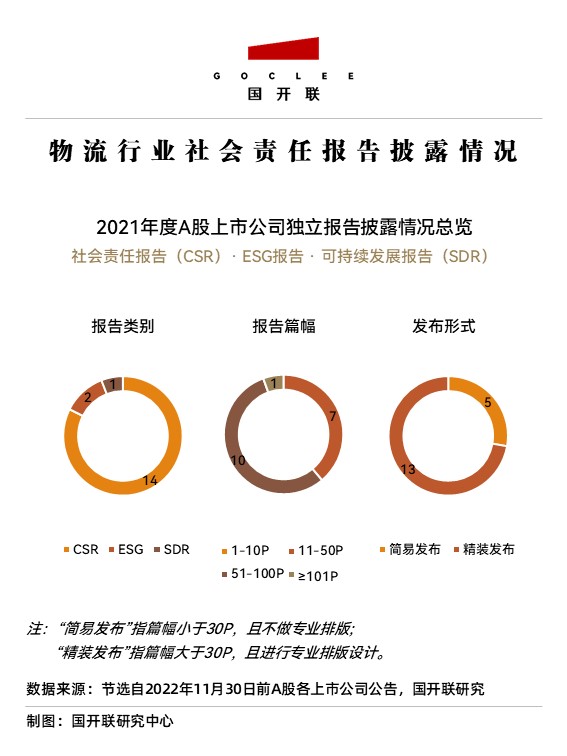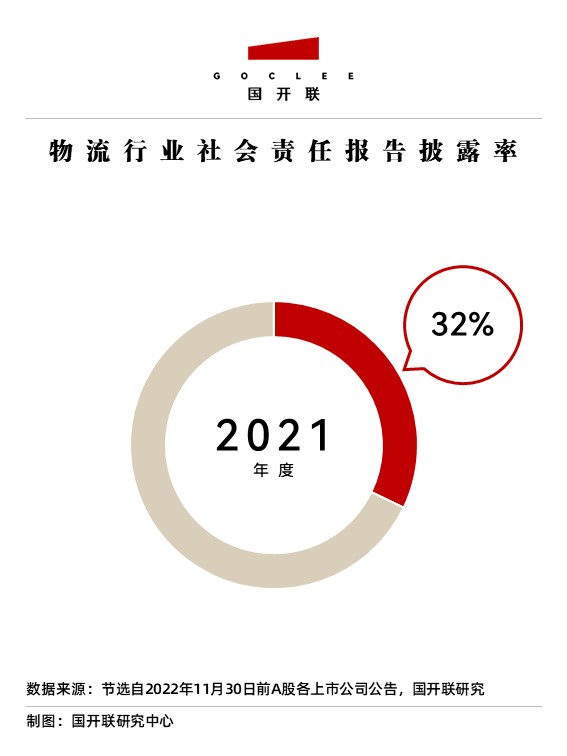A股上市的物流公司中,2021年度獨(dú)立披露社會(huì)責(zé)任報(bào)告(CSR)和ESG報(bào)告的企業(yè)共計(jì)17家,整體披露率達(dá)32%