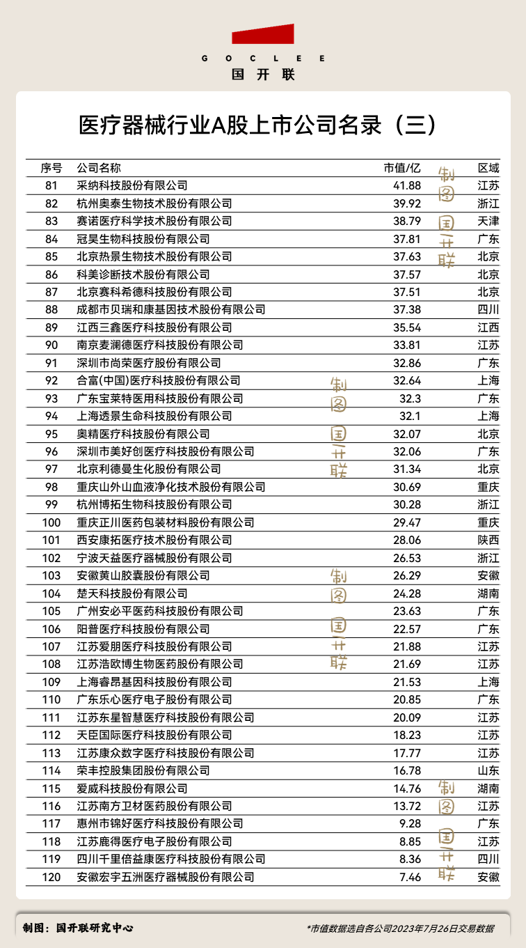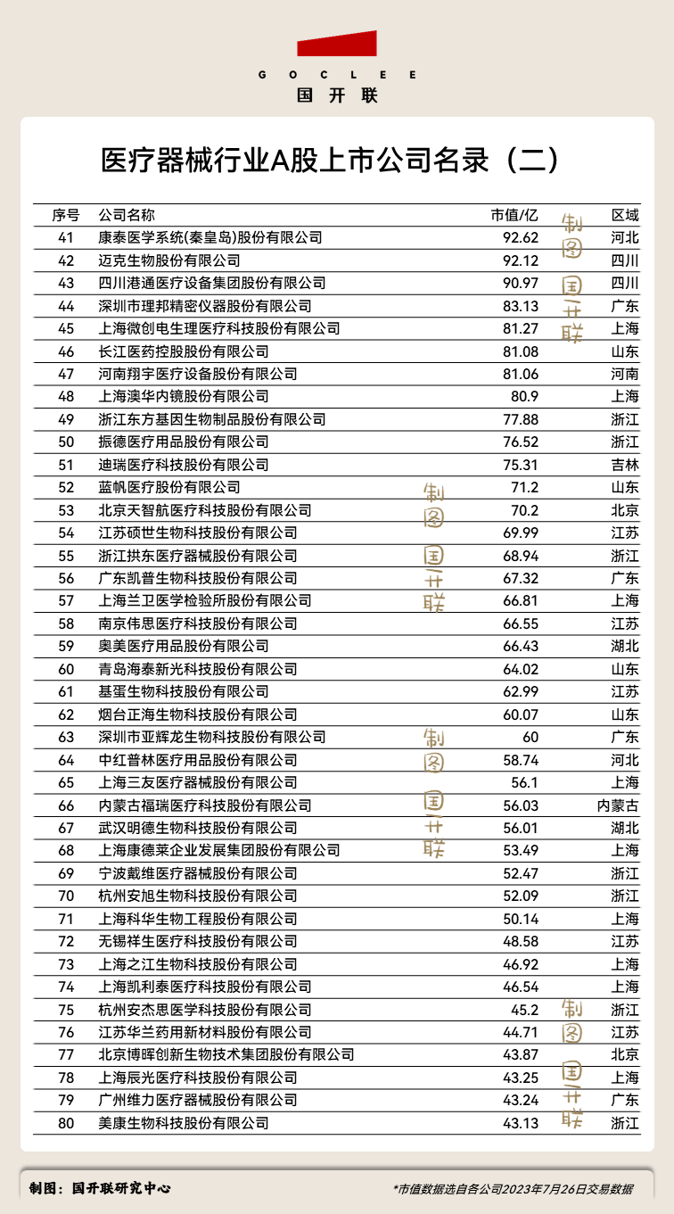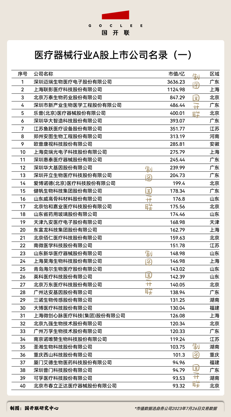 附:醫(yī)療器械行業(yè)A股上市公司完整名單