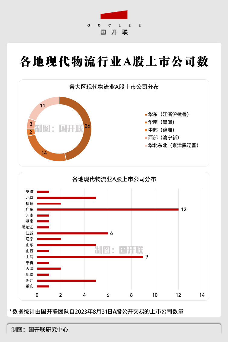 我國(guó)A股現(xiàn)代物流業(yè)上市公司及其地區(qū)分布、市值分布等具體情況如下: