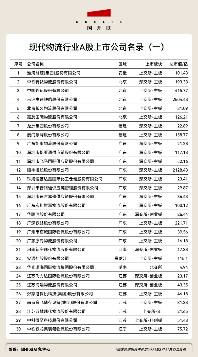 然而,現(xiàn)代物流業(yè)頭部企業(yè)大部分都已上市,如果抓住了現(xiàn)代物流業(yè)的這些上市公司,就是抓住了大部分現(xiàn)代物流業(yè)的招商機(jī)會(huì)。