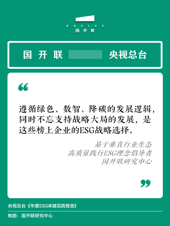 基于垂直行業(yè)生態(tài)高質(zhì)量踐行ESG理念的倡導者——國開聯(lián)研究中心可持續(xù)發(fā)展咨詢業(yè)務(wù)負責人指出,從30個榜單案例來看,這些企業(yè)多聚焦于企業(yè)“綠色化”、“數(shù)智化”和“節(jié)能降碳”等垂直行業(yè)生態(tài)實踐。此外,如“助力鄉(xiāng)村振興”、“賦能實體經(jīng)濟”等在服務(wù)國家戰(zhàn)略大局方面,這些企業(yè)也大多做出了突出貢獻,總體而言,遵循綠色、數(shù)智、降碳的發(fā)展邏輯,同時不忘支持戰(zhàn)略大局的發(fā)展,是這些榜上企業(yè)的ESG戰(zhàn)略選擇。